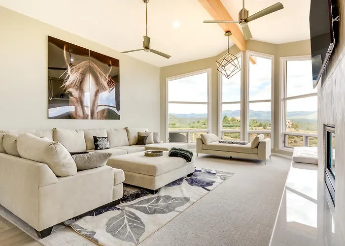During the stay at the 4-bedroom Prescott Gem Hot Tub And Mtn Views, 7 Mi To Dtwn Villa, guests can indulge in Jacuzzis or visit Lynx Lake, located 2.3 miles away.
